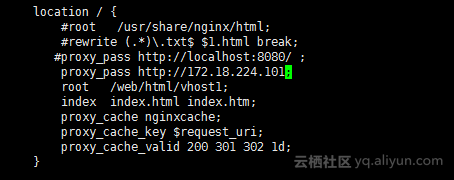 客户端请求的URL被这个location匹配时,请求的资源为后端服务器172.18.224.101/bbs/