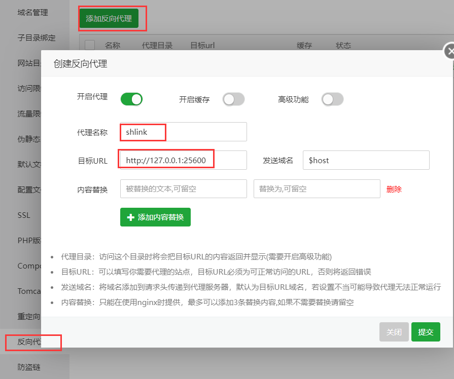 设置nginx反代,目标url里的端口就是你自定义的端口,点击提交