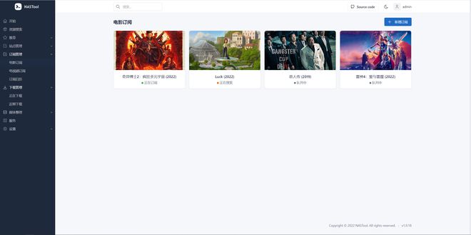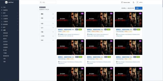通过nas-tools可以看到各个热门榜单的电影,也可以搜索任何想看的电影,如在资源搜索中搜索“奇异博士”,可以看到关于奇异博士所有的电影以及剧集都可以找到。