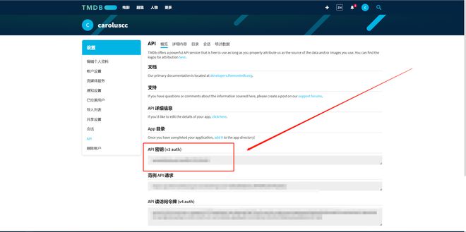 https://www.themoviedb.org/settings/api,点击进去注册,然后申请API,可以选择Developer选项(开发人员),弹出条款后大致的看一下即可下滑至最后选择接受。然后在信息页面填写一些信息即可。如选择website,随意命名,丢进去NAS的IP地址等,填个英文的申请理由如:“Meet the needs of individual customization, enrich the interface and functions of the website”最后就是个人信息部分,正常填写即可。
