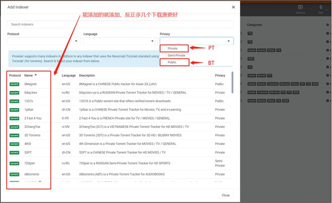 以上是我添加的源,供参考。下方是添加下载源的方式,随意添加就行。建议添加PT。