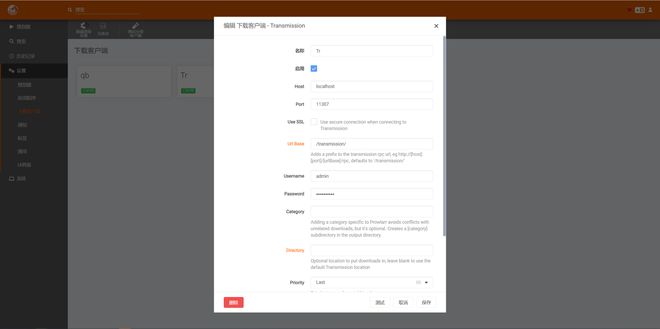 同时在”设置” >“下载客户端” ,选择添加Tr。