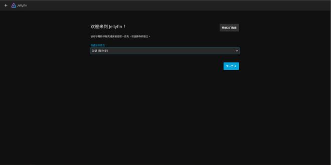 创建完成后点击“快捷访问”就可以进入jellyfin主页面,然后设置账号密码以及视频库。
