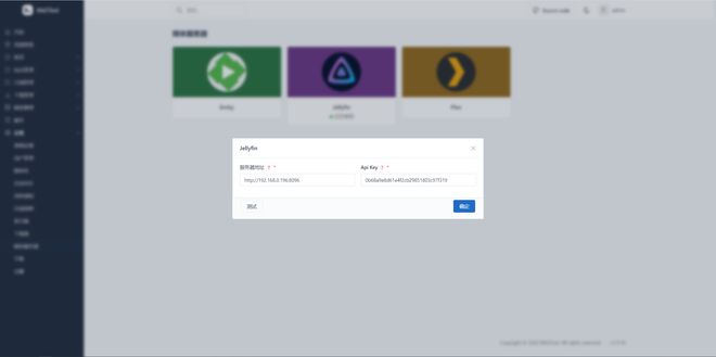 然后进入主页,可以看到精美的海报墙。然后复制API进入nas-tools,选择媒体服务器,选择Jellyfin。
