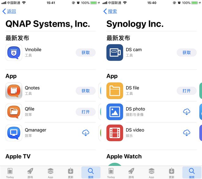 同时我也查看了在App Store里面的应用,目前群晖已经开发了13个应用,威联通开发了19个应用,两者的生态系统都建立的非常丰富。笔者收集了一部分常用的功能,发现双方都有相对应的应用,而且做得都是非常好用,在使用体验方面近乎没有区别。