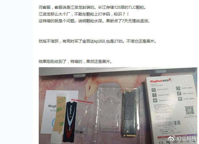其实还有一些国产SSD用无标颗粒的问题也挺严重的,就像网友所说的,不论颗粒是谁封装的,不敢在颗粒上打字码,标识,肯定是不正常的。更重要的是,这种颗粒根本不能代表长存颗粒。