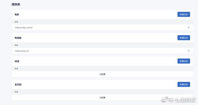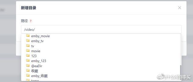 点击新增目录,路径中填写embyjellyfinplex的媒体库路径,直接通过鼠标点击既可以选择相关目录,大大降低了小白配置错路径的风险,这点非常非常非常好评。
