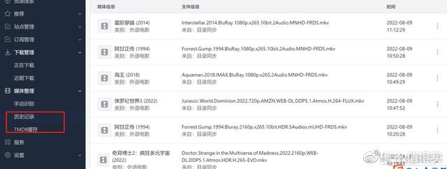 媒体识别分为两部分,一个是手动识别,一个是TMDB整理过资源的历史记录。