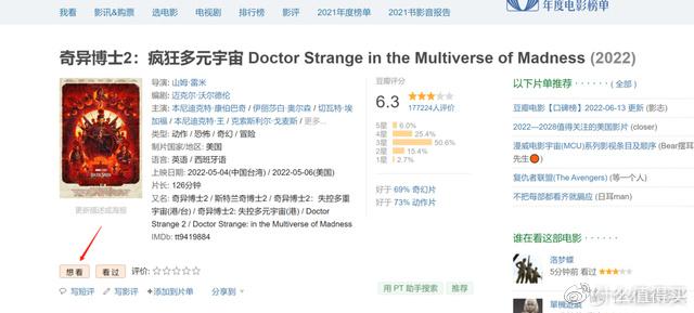 1、在豆瓣中浏览视频的时候,遇见想看的电影,点击电影简介中的想看。