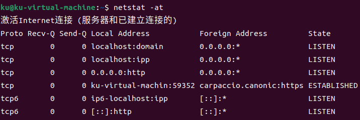 查看TCP连接:netstat -at;