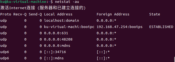 查看UDP连接netstat -au;