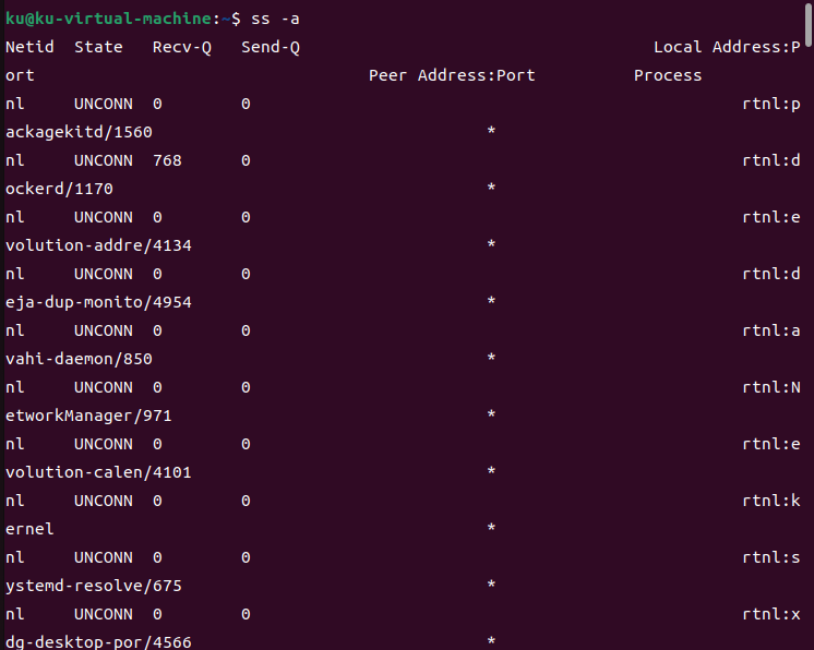 查看所有网络连接:ss -a;
