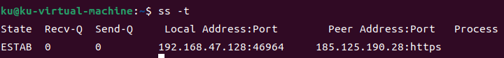 查看TCP连接:ss -t;