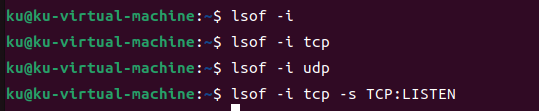 - lsof命令是用于查看系统中打开文件和进程相关信息的命令。通过指定网络类型和协议,可以查看网络连接和监听接口。