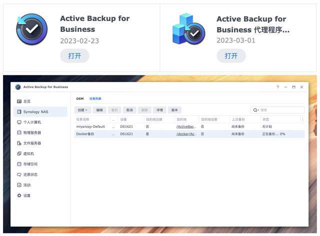 在【NAS 与终端】之间,可以考虑「Active Backup for Business」。首次使用的时候,需要激活软件,操作都很简单。这个软件可以备份个人计算机、物理服务器、文件服务器、虚拟机等多种设备数据,功能相当强大。