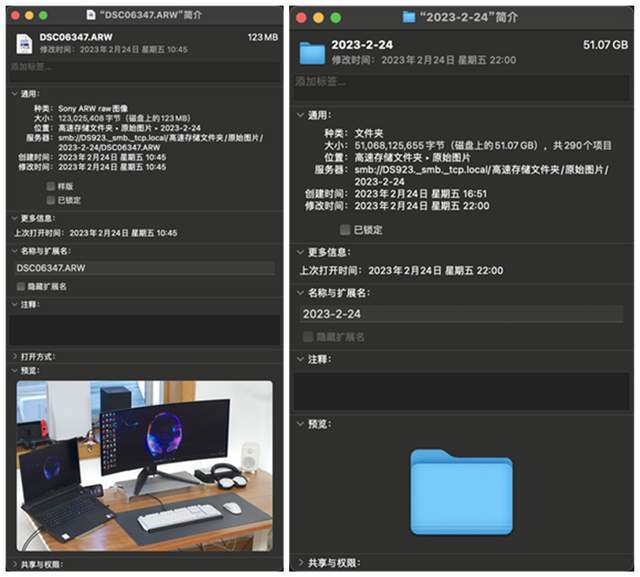 过去使用千兆 NAS 时,如果直接在 NAS 内编辑素材,就容易在加载和渲染时卡顿,影响工作效率,这些待处理的照片素材过去常常会放在电脑桌面或者外接固态硬盘上。为了不让我 1TB 的 MacBook 和 2TB 的 PSSD 被占满。只能先拷贝到桌面,等处理完之后,再倒腾到 NAS 里面,不仅多了一道程序,而且速度较慢。
