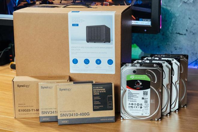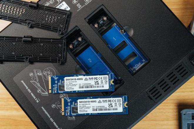 这次入手DS923+,还入手了:群晖 E10G22-T1-MINI 电口万兆网卡+2条群晖 企业级 M.2 NVMe SSD SNV3410-400G。