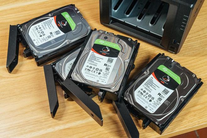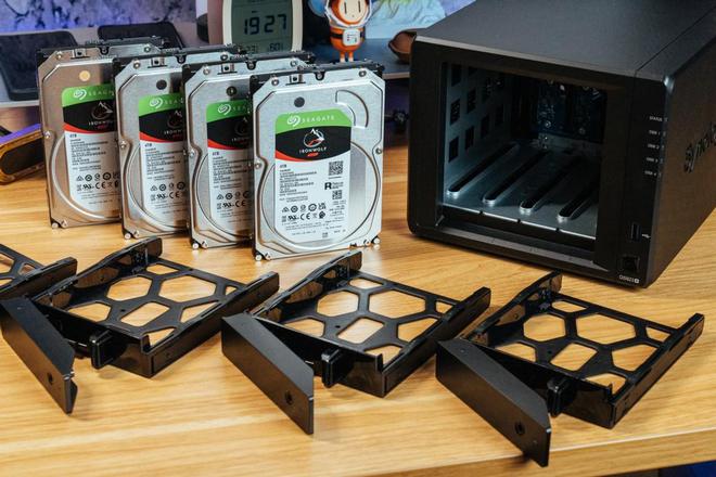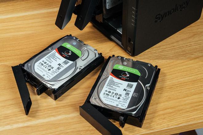 之前的DS420+使用的就是希捷酷狼NAS硬盘(Seagate IronWolf),在这几年使用下来都非常稳定,而且全系均为CMR传统磁记录。这次DS923+,我依旧还是选择回购3.5英寸的希捷酷狼NAS硬盘,选的是4TB,型号为ST4000VN006,SATA 6Gb/s规格,256MB缓存,转速5900RPM。