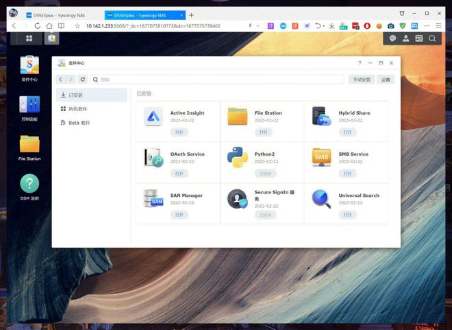 “套件中心”里面是DSM系统所支持的应用程序,例如媒体管理器、下载工具、备份工具、文档应用等,安全性是经过官方认证的,可以放心安装使用。除此之外,也可以手动安装其他来源的程序。