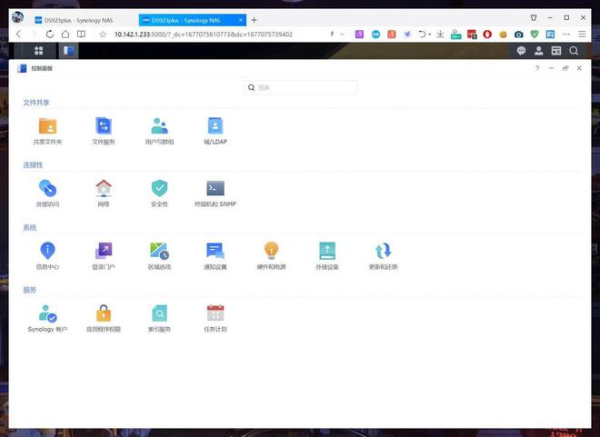 关于群晖DS920+的所有设置选择,基本都包含在“控制面板”内。例如设定自动开关主机、修改QuickConnect、设定共享、开启链路聚合等,主要是细致化的调节选项。