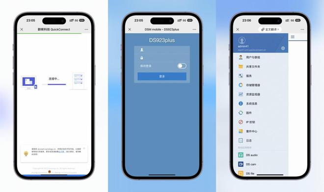 例如我在手机端的浏览器输入http://QuickConnect.cn/xxp41,登陆账号后,便可远程访问进入到Synology NAS界面。