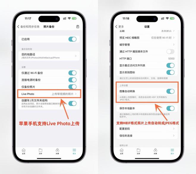 现在我手机拍摄照片,都利用Synology Drive App的照片自动备份功能来上传到NAS中,实现统一的分类管理备份,也方便释放手机存储空间。iPhone用户照片的备份还支持Live Photo,在设置中还能把iPhone拍摄默认记录的HEIF格式照片,在上传时自动转成JPEG格式。