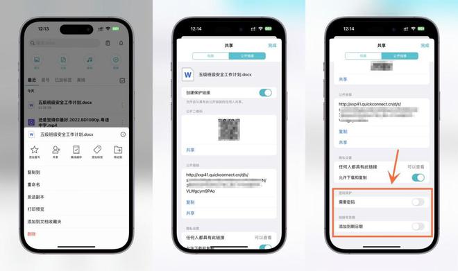 在Synology Drive App中,还将NAS中的文件共享给同事或朋友,无需下载和登录任何应用,直接扫描二维码或打开链接即可。支持私人邀请用户、直接公开分享,也可以设置需要密码和添加到期时间等方式,功能和百度网盘的分享类似,实现私人网盘分享的体验。
