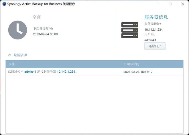 等待备份,在这期间,可以在ABB套件或者PC端Synology Active Backup for Business代理程序上查看备份进度。当备份完成后,如果需要还原怎么样操作?非常简单。