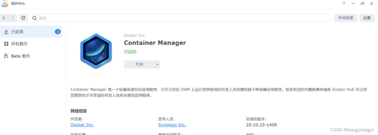 🔺之后Container Manager便能顺利的安装成功了!