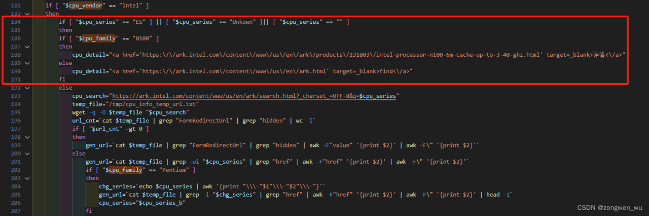 if [ "$cpu_series" == "ES" ] || [ "$cpu_series" == "Unkown" ]|| [ "$cpu_series" == "" ] then if [ "$cpu_family" == "N100" ] then cpu_detail="<a href='https:\/\/ark.intel.com\/content\/www\/us\/en\/ark\/products\/231803\/intel-processor-n100-6m-cache-up-to-3-40-ghz.html' target=_blank>详情<\/a>" else cpu_detail="<a href='https:\/\/ark.intel.com\/content\/www\/us\/en\/ark.html' target=_blank>find<\/a>" fi