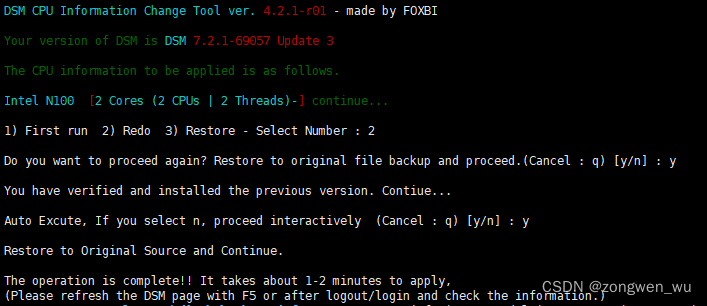 执行完成后,退出群晖的网页端,重新登录即可看到CPU信息了
