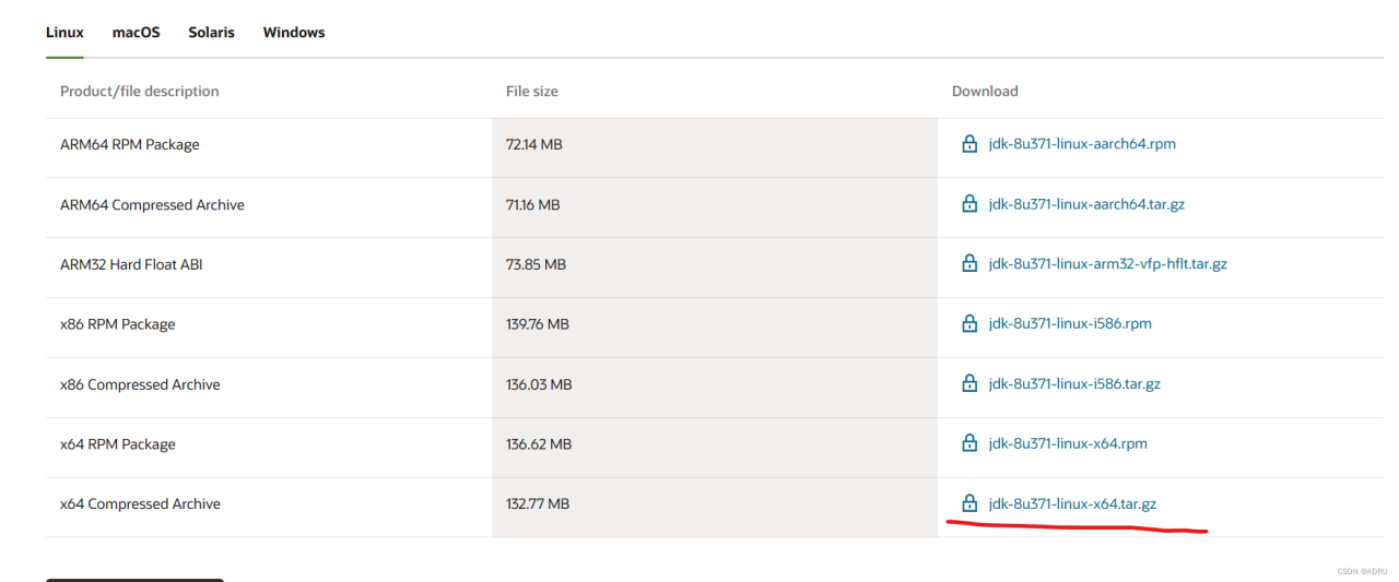 1.去官网下载jdk对应版本的压缩包:Java Downloads | Oracle