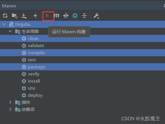 2.将本机项目中的 Maven下的clean + compile + package进行打包: