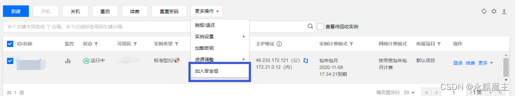 注意:这里一定要把云服务器安全组中的防火墙关了,把对应8080端口开放。
