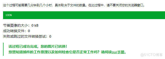 稍等片刻,完成率将达到100%,表示旧图片已全部转换为webp格式。