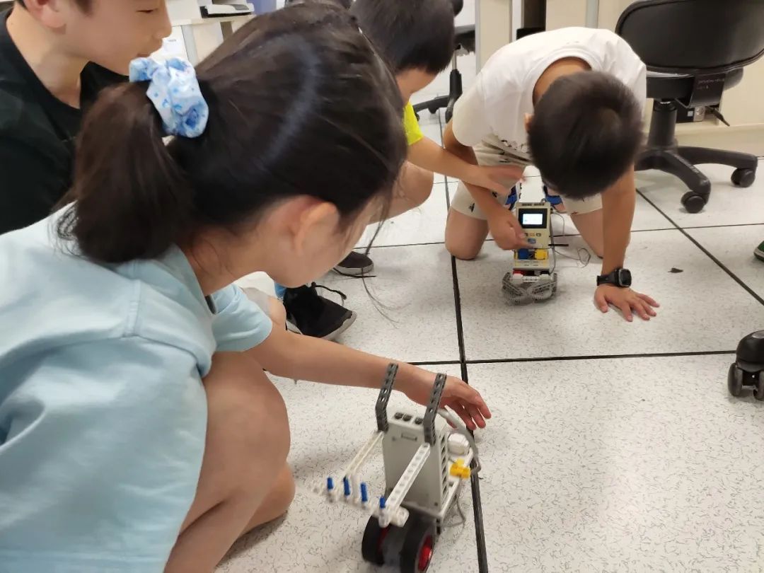今天我参加了徐汇区青少年活动中心的五育夏令营的ai机器人大挑战课程。课程里我和同学一起搭建了机器人并做了对应的程序。在最后的测试中我们一次又一次的调试,终于让机器人运行流畅了。虽然过程很辛苦,但看到自己做出的独一无二的机器人时,我就有了很大成就感。