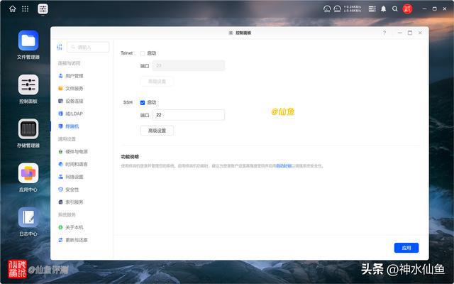 对了,很多朋友想要的SSH和Telnet功能,可以在控制面板中直接开启,使用NAS的管理员账号与密码即可进入: