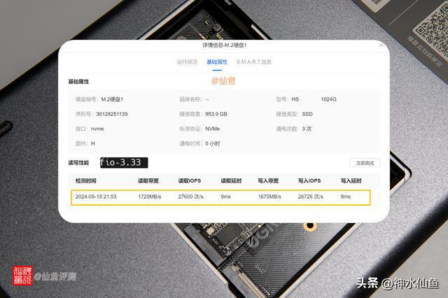 我使用了一块1TB的PCIe 4.0×4 M.2固态硬盘进行测试,实测读取带宽为1725MB/s,写入则为1670MB/s;