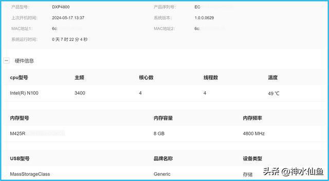 接下来,我们来看一下DXP4800 NAS的硬件关键配置。
