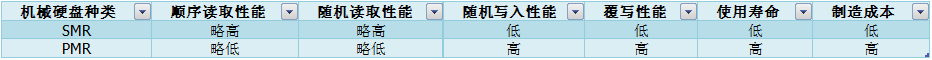简单做了一个表格来说明两者在性能上的差异。可以很明显的看到,SMR硬盘除了在读取性能上略优于PMR之外,其余项目的对比结果,都是完败。除了最后一项,SMR可以给厂商节省成本,这点恐怕也是厂商不遗余力的推广SMR技术的根本原因。