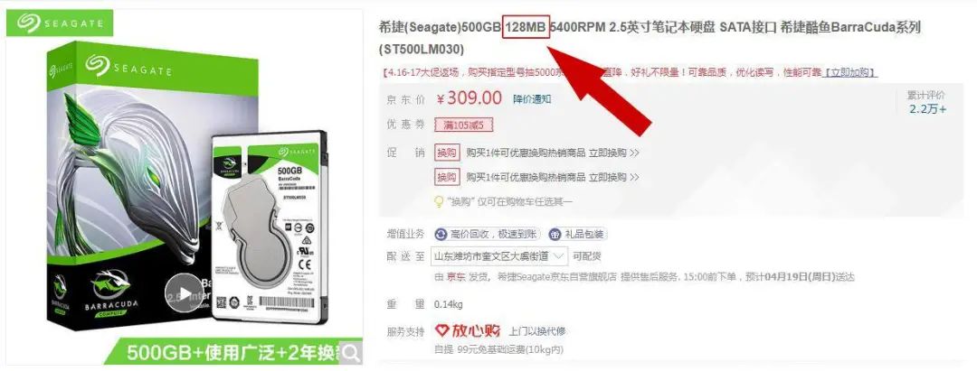 譬如这个:128M缓存!元芳,这个你怎么看?事实上,这个硬盘也是SMR叠瓦硬盘。6T以上容量的PMR硬盘,使用256M的缓存也不奇怪,所以这里需要继续引入其他的判断方法。