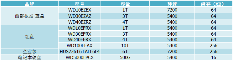 西部数据PMR硬盘型号举例