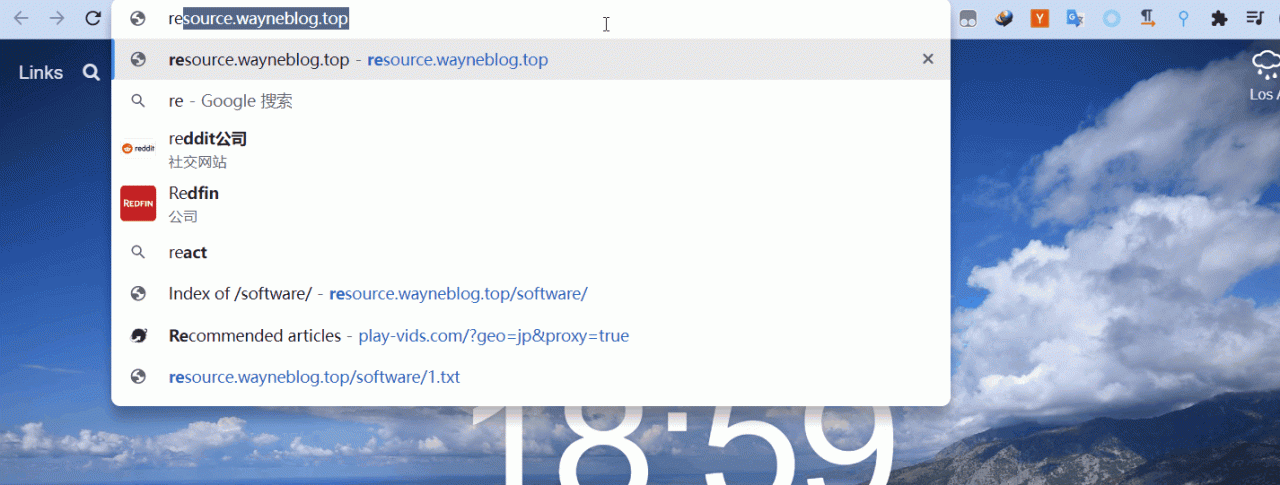 在网站的目录下,创建一个默认文档(index.html)来指向共享页面,然后再随便新建几个目录,通过域名去访问: