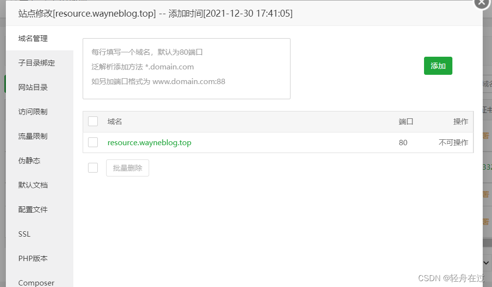 新建一个站点(纯静态,无数据库、无FTP,FTP一会再说),配置好域名的指定(域名商那里就请看官自己配置啦)
