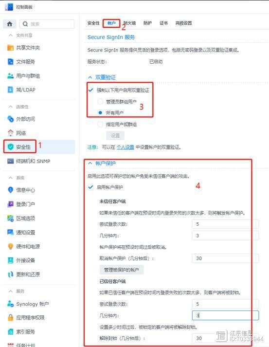 账户密码安全是最重要的,也是最容易忽视的问题,开通外网访问建议进行提升密码保护等级,操作如下: