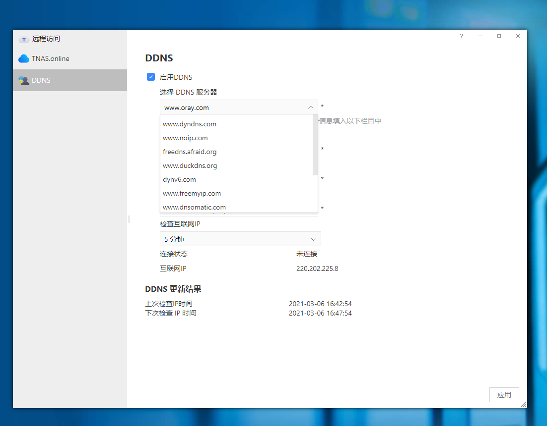 二.可以使用第三方DDNS,铁威马支持的第三方DDNS服务商如下图