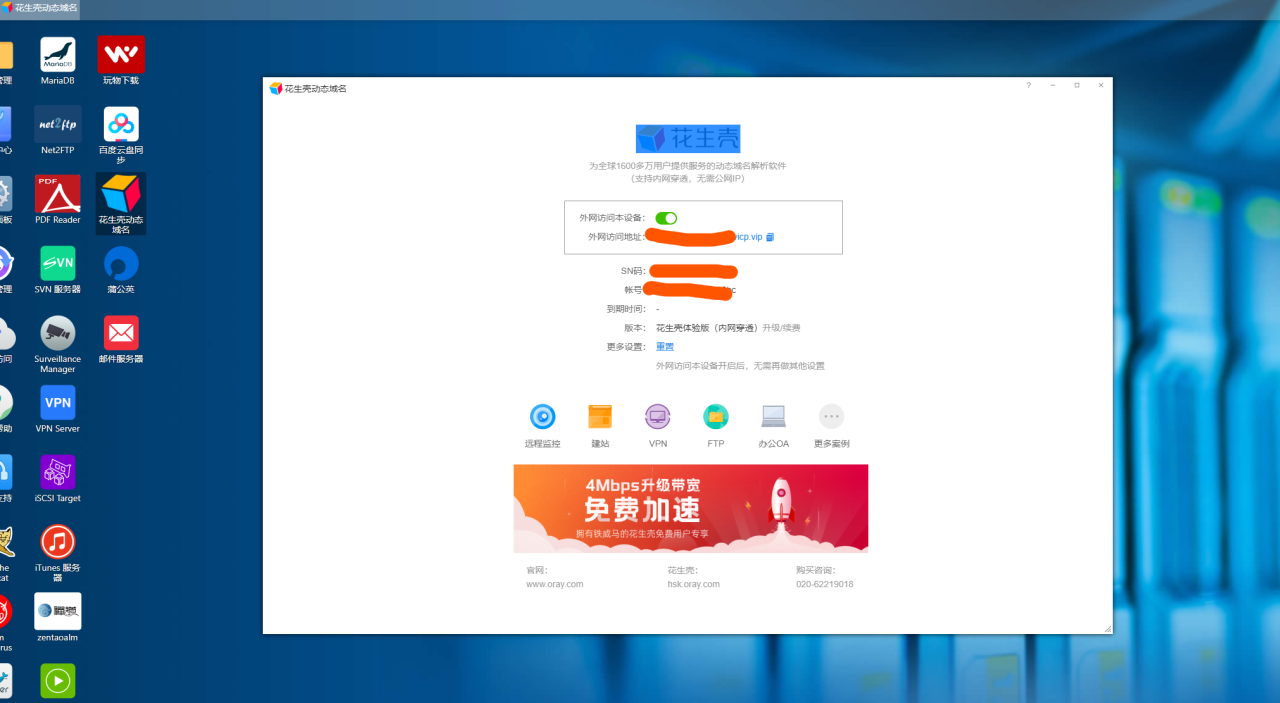 三.使用oray为铁威马开发的花生壳客户端,如下图所示