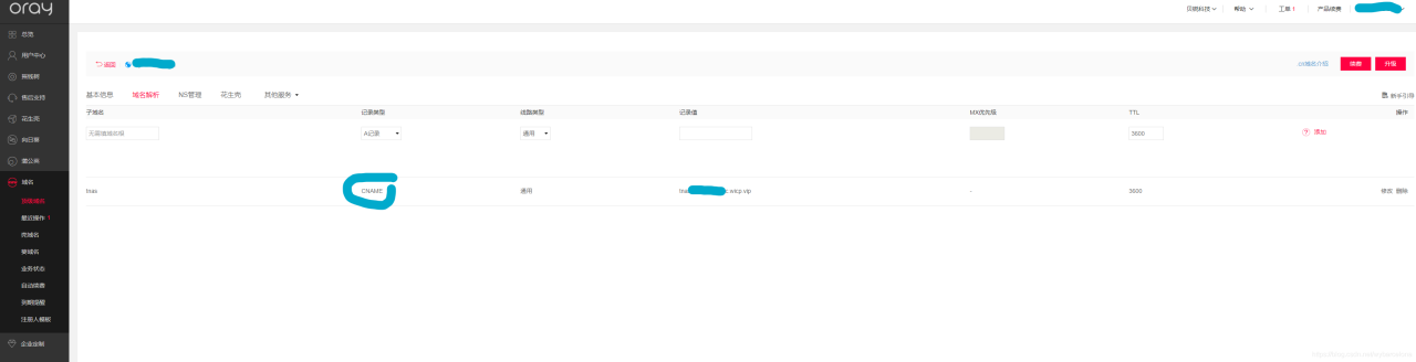 又陷入困惑,只能再次求助oray技术人员,他们告诉我的是他们的壳域名不支持作为CNAME记录的解析值,建议我改成URL记录的解析值
