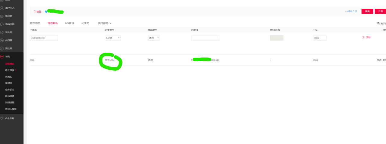 时间过去一天,突然冒出一个灵感,既然我已经注册了域名,那能不能在我注册的域名那里添加域名解析记录,解析值填成这个用SN注册的难以记住的访问地址?