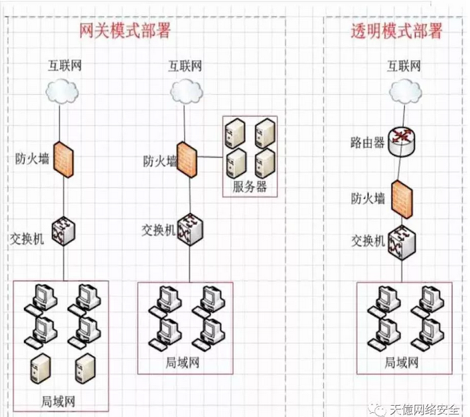 网关模式是现在用的最多的模式,可以替代路由器并提供更多的功能,适用于各种类型企业透明部署是在不改变现有网络结构的情况下,将防火墙以透明网桥的模式串联到企业的网络中间,通过包过滤规则进行访问控制,做安全域的划分。